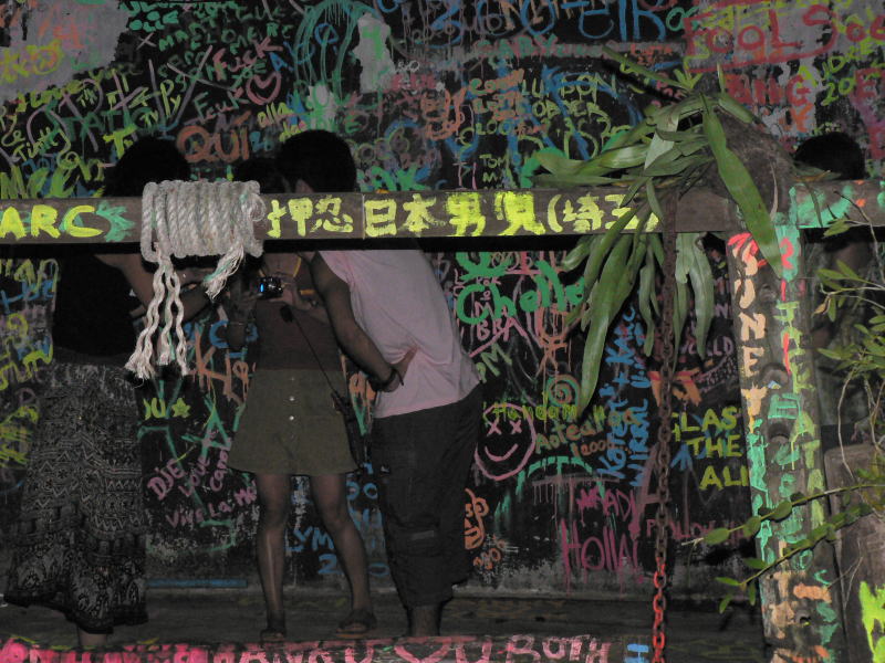 よく言えば開放的なオープンエア、悪くいえば大学寮の庭ような壁じゅう落書きだらけの空間に、萱葺き屋根風のカウンターと8人くらい座れそうな大きなテーブル席が約10席。レゲエと浜風を浴びながら飲むカクテルは格別。世界中の言語で落書きされた壁に、自分の作品を加えるのも一興。いいところです。