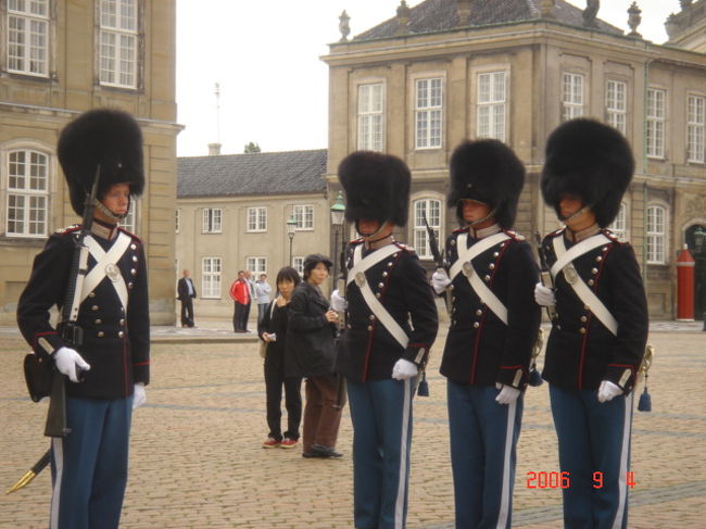 デンマーク王室のアマリエンボー宮殿観光。衛兵交代をま近かで見学。