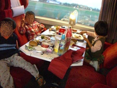 生意気に、1等車で食事する子供たちです。
