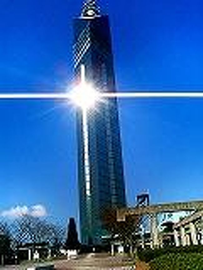 余裕時間に訪れた福岡タワーに太陽の日差しが反射。