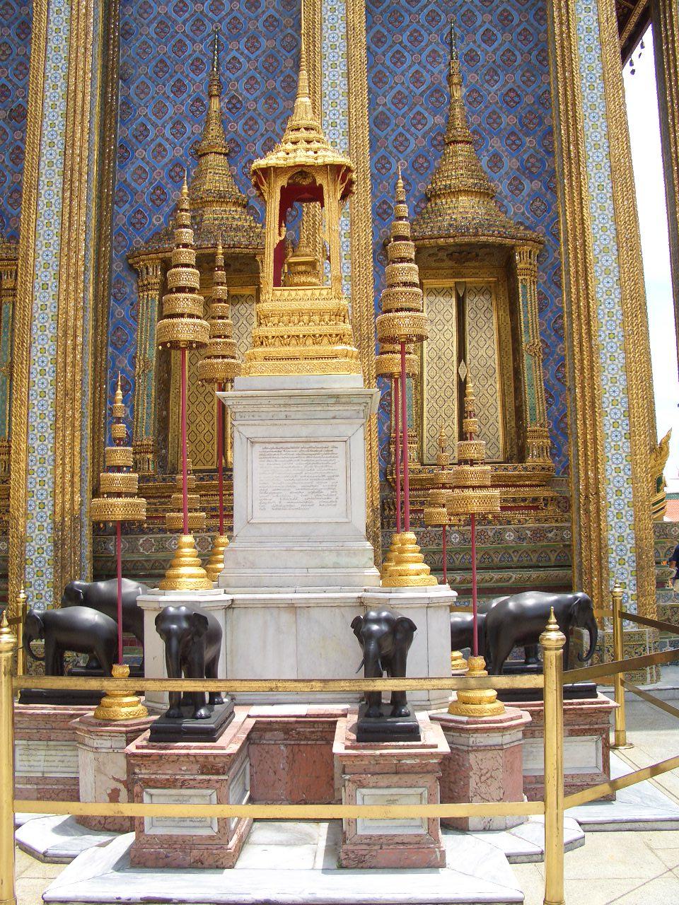 ラーマ1世から前の8世までの彫像を安置するロイヤル・パンテオン。