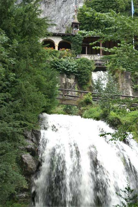 まずインターラーケンから近い鍾乳洞、聖ベアトゥス洞窟に行く。インターラーケン西駅からバスで洞窟から流れ出る小川を渡る橋のところで下車する。50mぐらい上がったところに洞窟入口の施設がある。