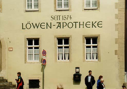 Loewen Apotheke:ライオン薬局 1374年以来とは驚き 1374年とは足利義満がその6年前に征夷大将軍になった時代なんだ。