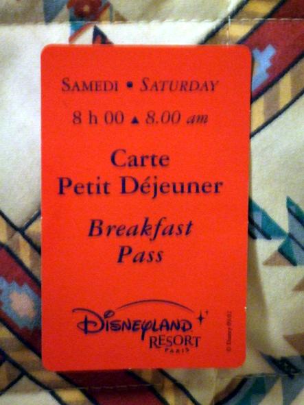 朝食の予約券。