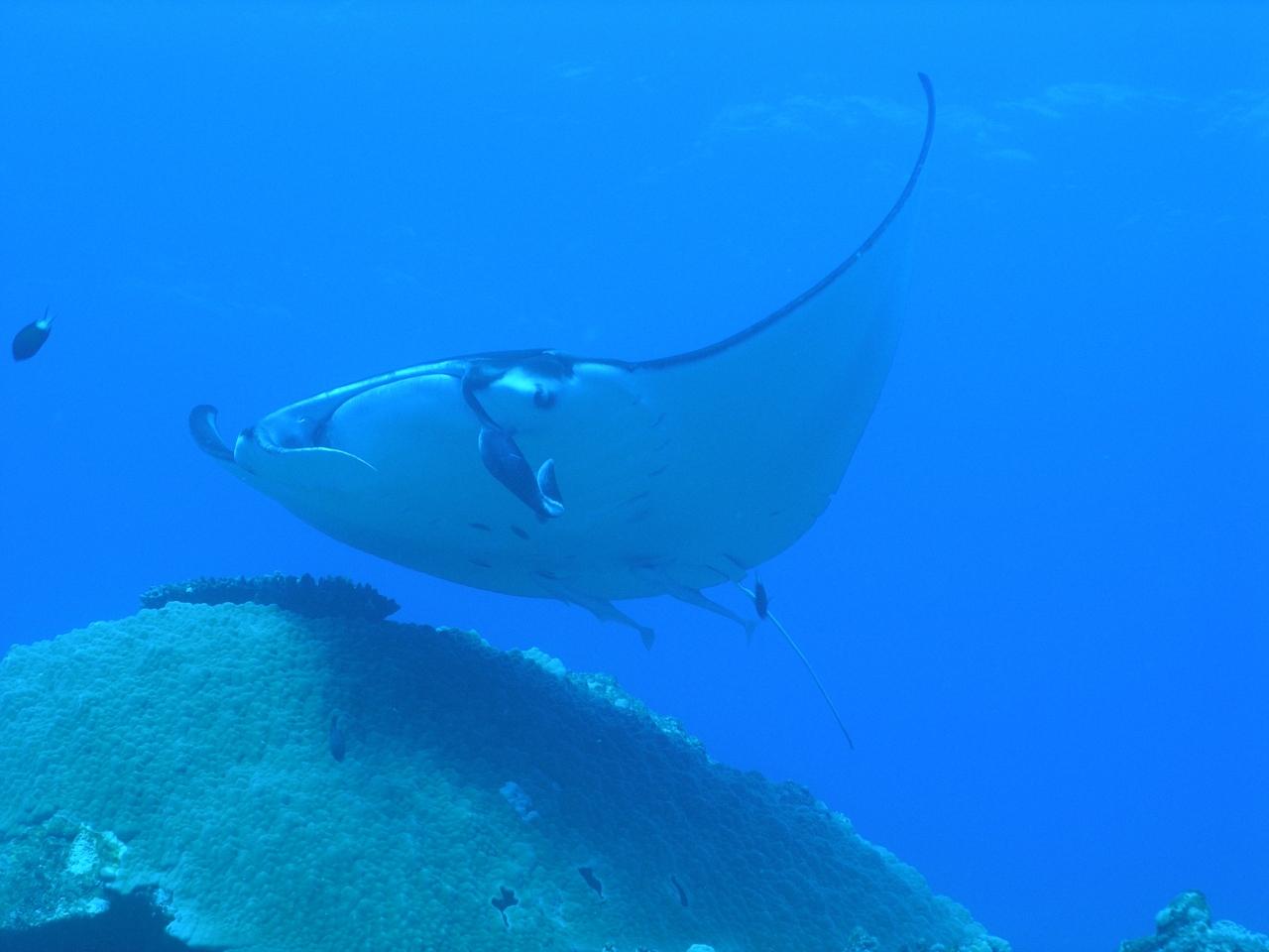 今日はエントリーするとすでにマンタ君が待っていてくれて、安全停止で根を離れるとお見送りまで♪ -