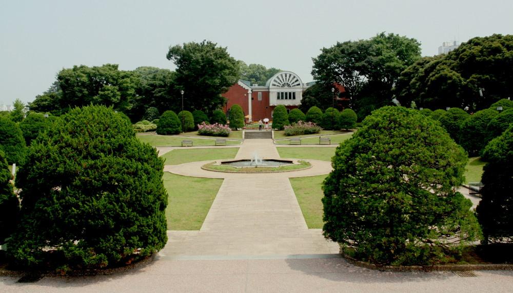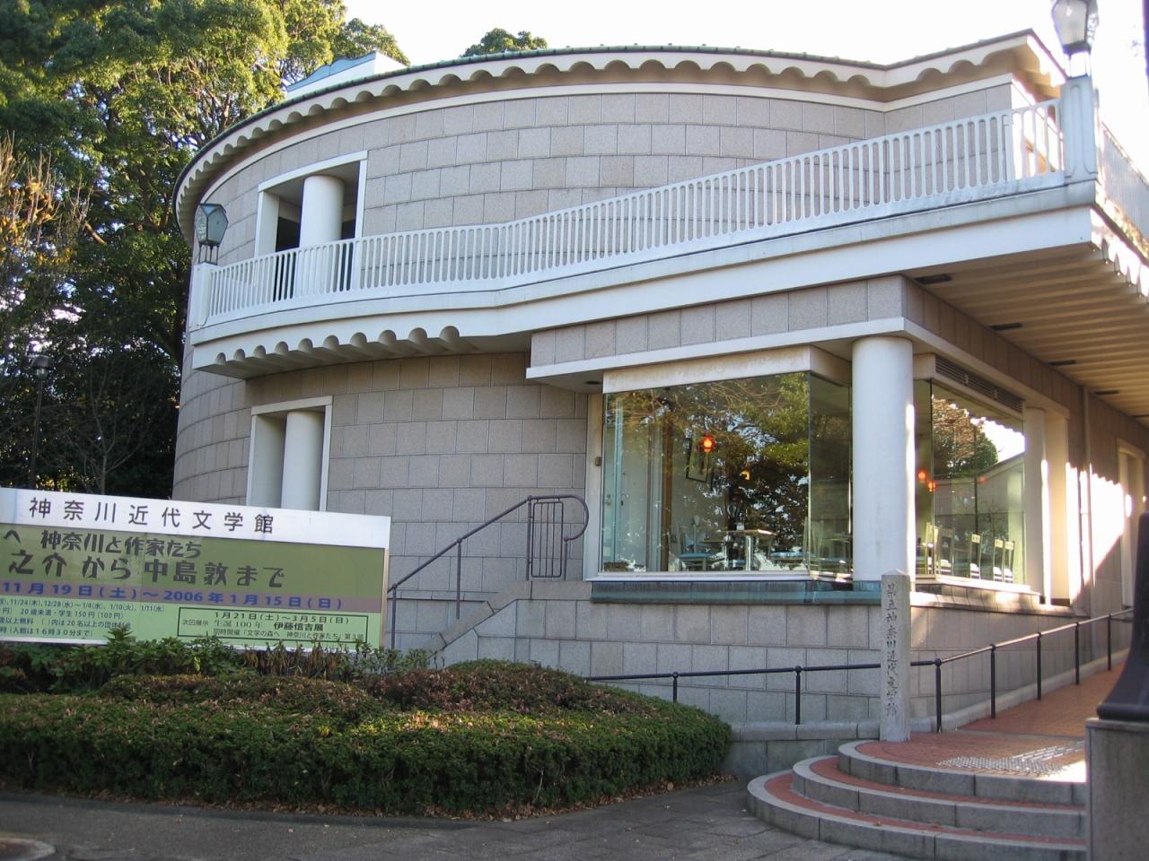 公園内には四季咲きのバラ園、文学館、大佛次郎記念館などがあります。 -
