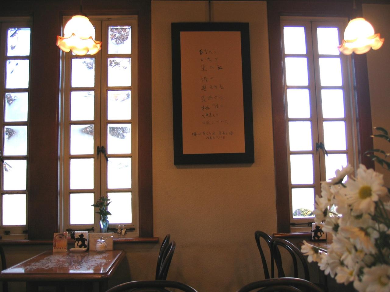 すこし傷みかけた木のテーブルが、いい味を出しています。 -