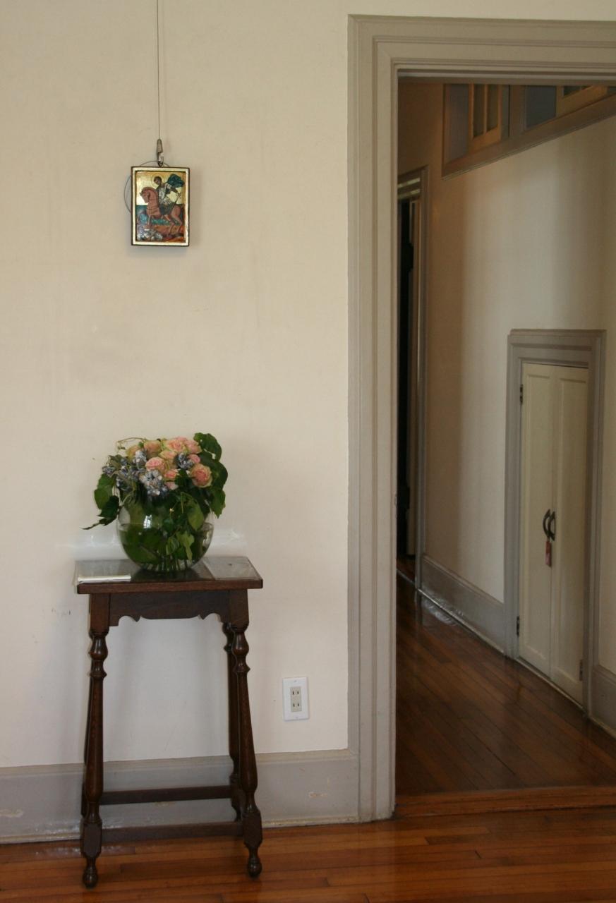 室内各所に花が飾ってありますが、ボランティアのかたによってアレンジされているそうです。