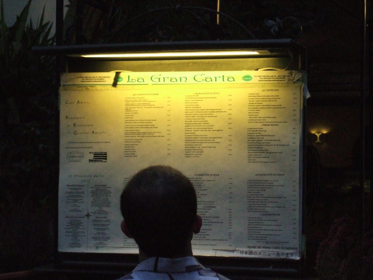これからすぐに、夕食をとるリストランテへ向かいます。添乗員の吉田さんはホテルに皆の荷物を届けに行くので、その間だけ他の現地ガイドさん(日本人)に案内して貰いました。 -