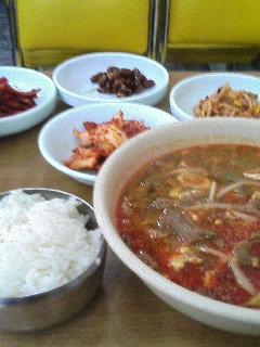 ユッケジャンと言うらしい。日本語で言うと辛口スープ?