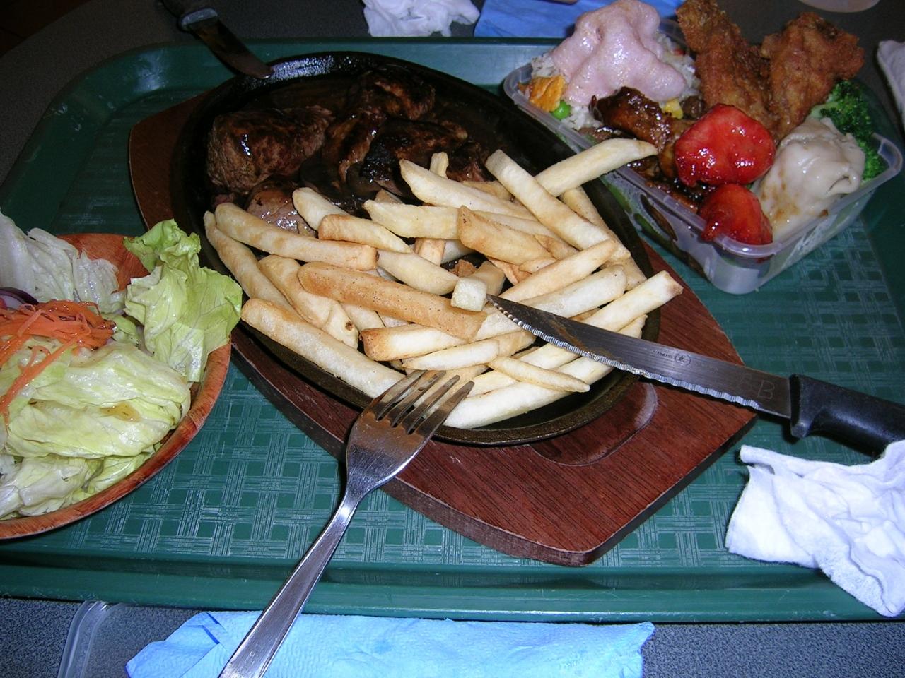 奥に写っている中華料理は、タッパーにつめ放題で8ドルでした。 -