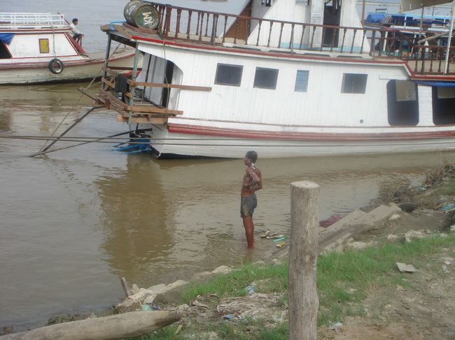 “船が来た”というのでどこどこ?と見るとかなり後ろの方に止まっている。いくつかの船を跨ぎながら自分達の船にまでいかなければならず。。前にいたイギリス人のおばさんは怖くて時々動けなくなるくらい船と船の間隔が開いており、綱渡りのように船に乗る。結構スリルな乗船となった。