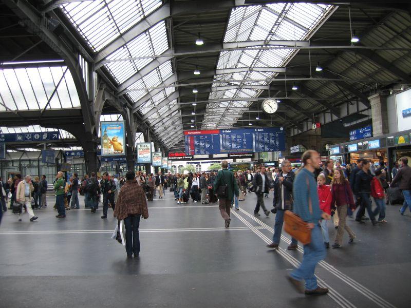 チューリッヒ中央駅。コンコースがとても広く、お店も沢山あって、ここだけでも生活できそうな駅です。