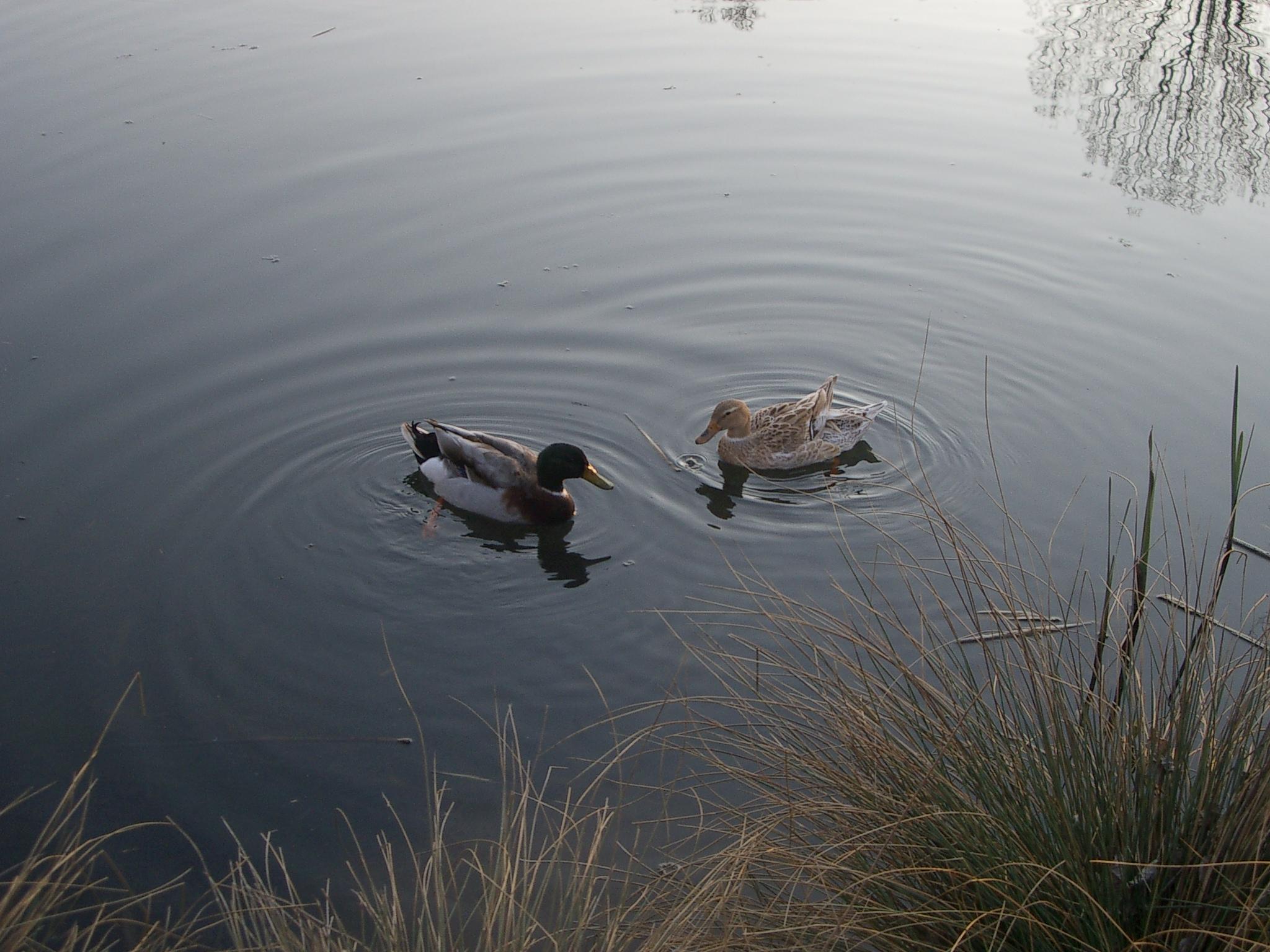 公園の池にいたカモのカップル。