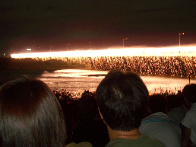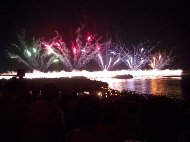 信濃川の上空を何万発もの花火が打ち上がっては、
