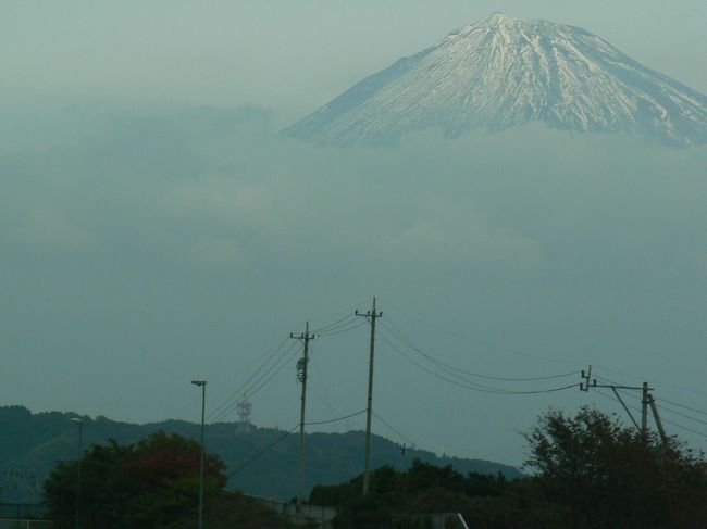東名を富士へ走る途中、曇天ながら富士山が見えた。
