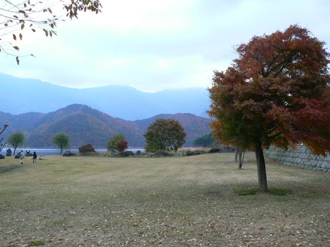 朝霧から西湖へ続く道はすでにほとんど葉は散っていた。