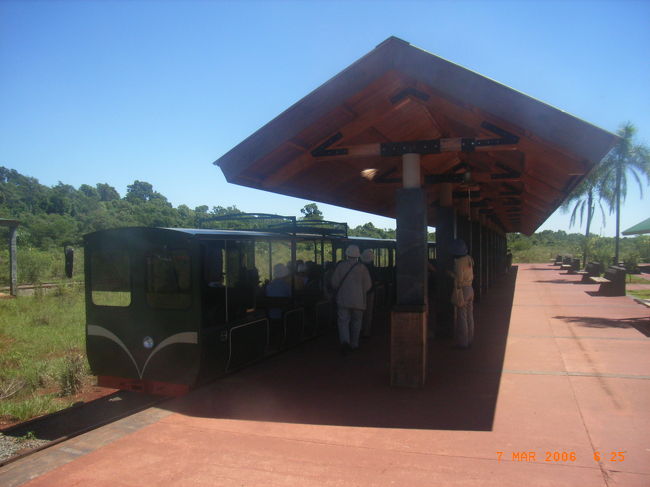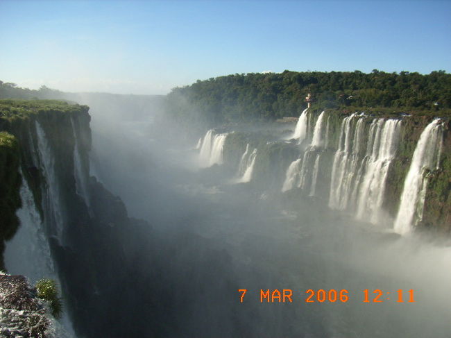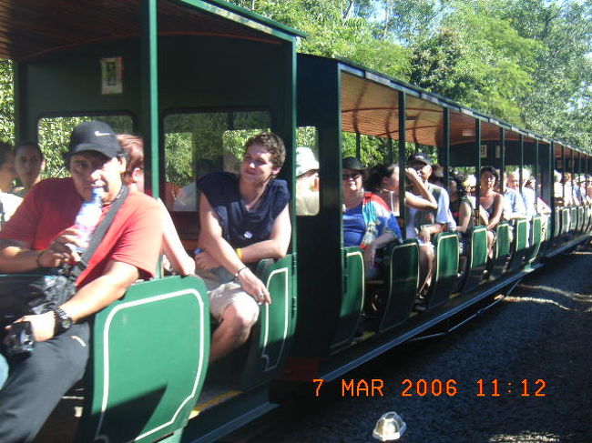 バスに揺られること30分、雲ひとつない空の下、バスはイグアス国立公園に到着。日本人のツアー団体客も多い。外はとても蒸し暑い。少し歩いてからイグアス国立公園内を走る列車に乗る。列車はゆっくりとジャングルの中を走り、とても気持ちよかった!その後イグアスの滝へ歩いていく。「悪魔ののどぶえ」と呼ばれるイグアスの滝のクライマックスほどではないが、滝が多くてマイナスイオンに浸りながら歩いていく。途中、リスやちょうちょやアリなど色々な動物や昆虫と出会えた。ちょうちょの種類は500くらいあるみたいだ!