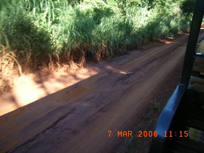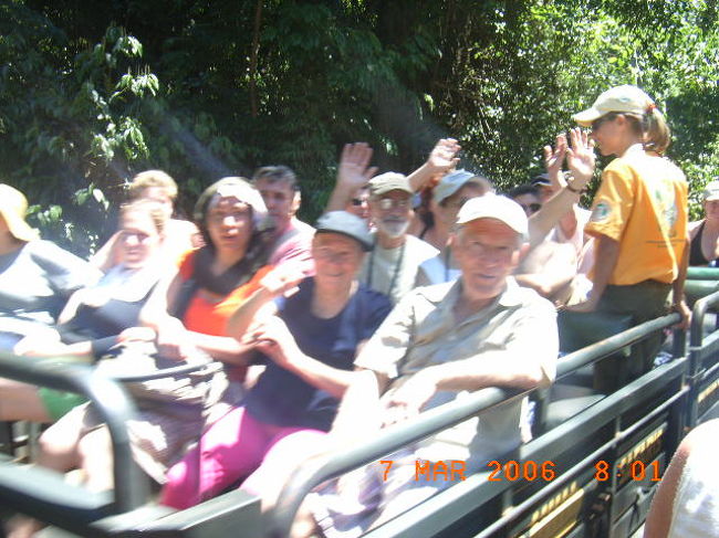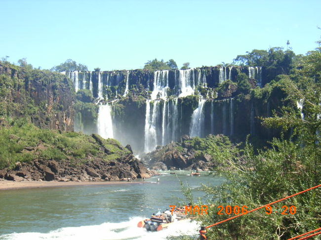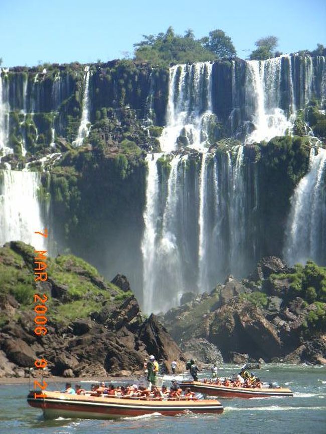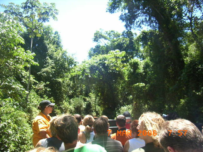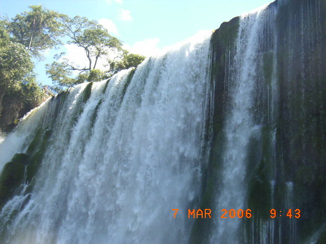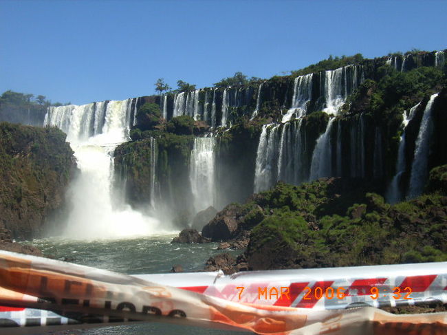 その後12時30分くらいからツアーへ。ジャングル・ツアーはジャングルの中を20分程走るだけのもので、特別面白くもなかった。だが、面白くないってことがわかったのもやってみないと言えないことだからよしとする。何事も経験だ。その後、スピードボートで滝に突っ込んできた。デジカメや財布などは専用の防水バックへしまい、日本で買ってきた水中カメラを用意。スピードボートは爽快にスピードを上げいていく。水しぶきを浴びながら、いよいよ大きな滝の真下へ。だんだんと水がかかり、近づくにつれ土砂降りの台風の中にいるような状態に!周りの欧米人も叫び声をあげて楽しんでいた。