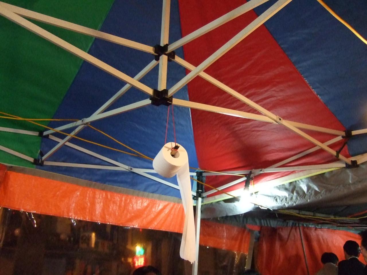 屋台の天井から吊ってるトイレットペーパー。