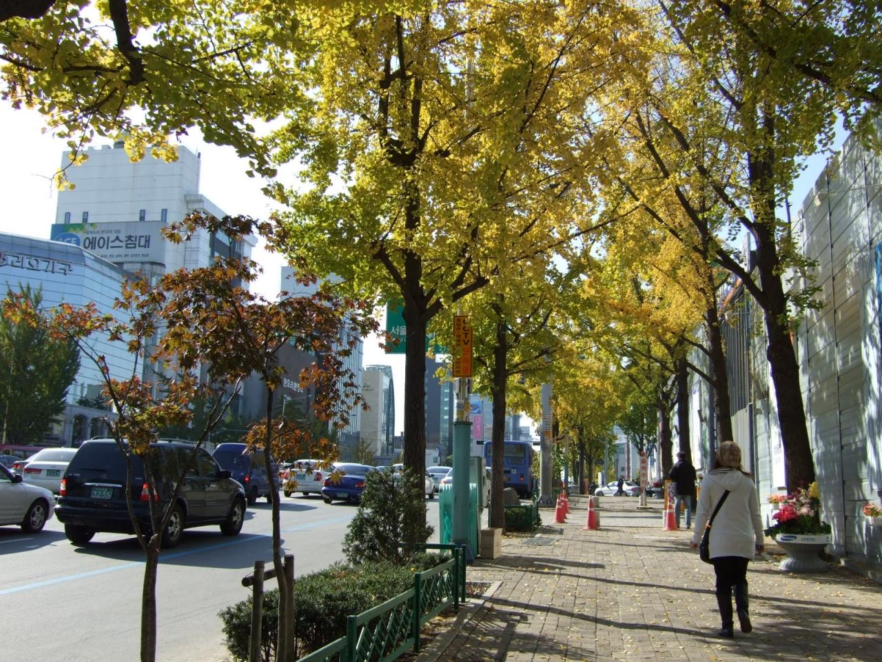 街路樹もほんのり黄色。