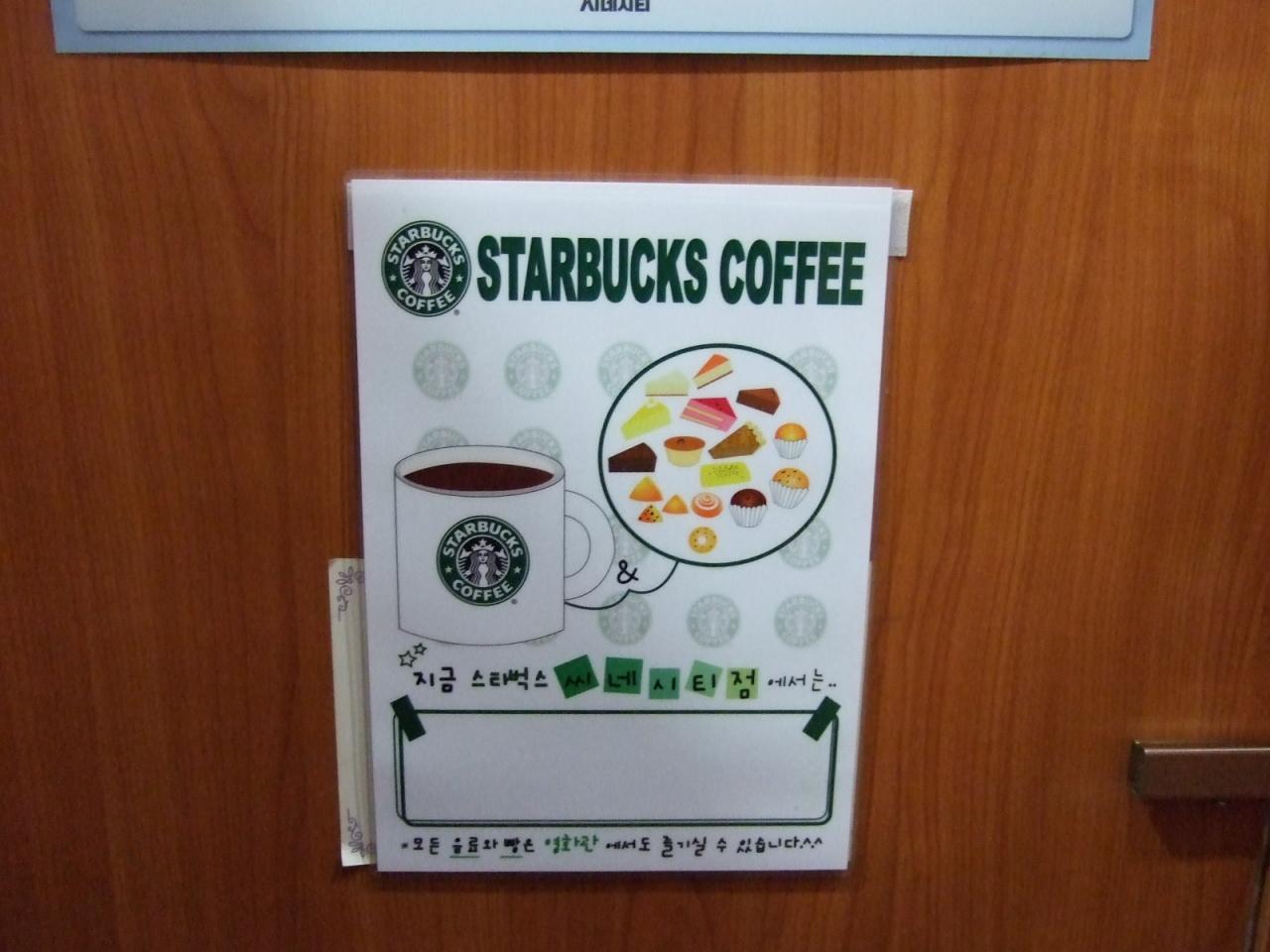 トイレの個室に、スタバの広告。
