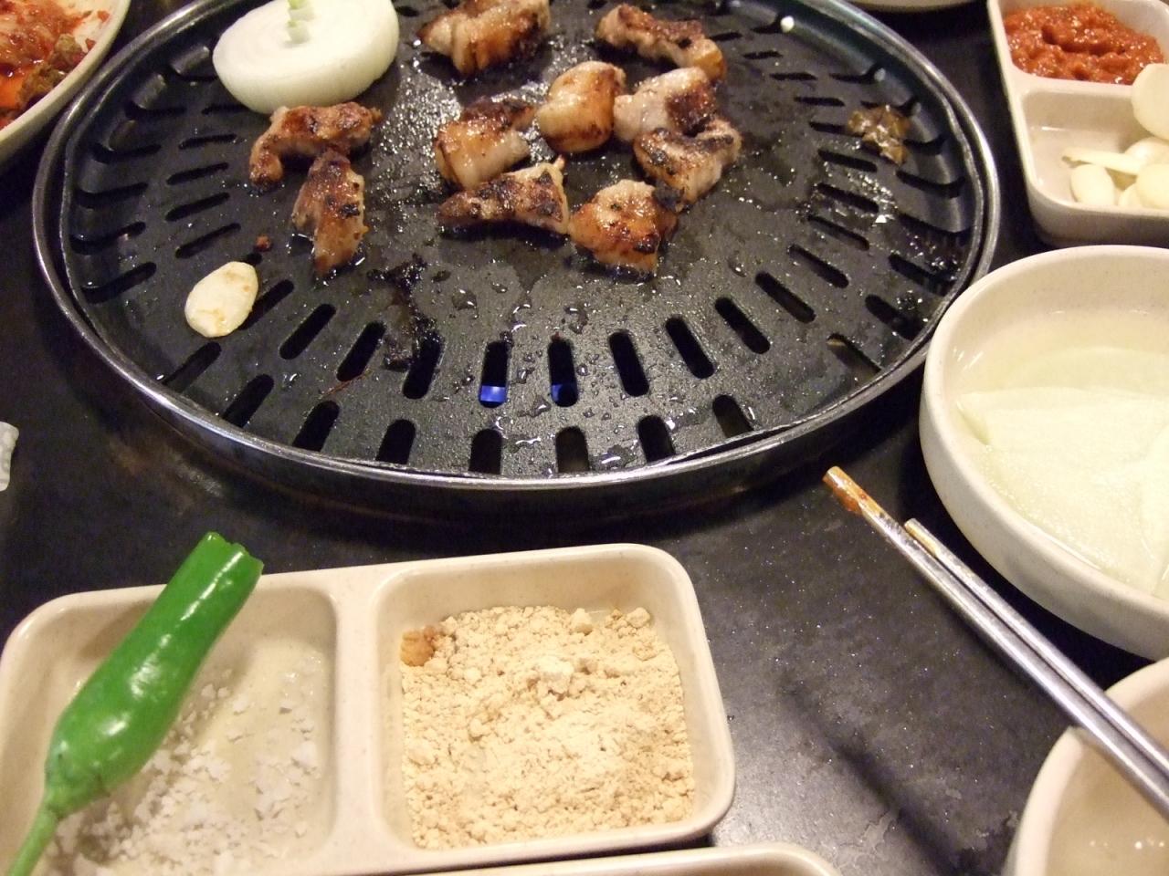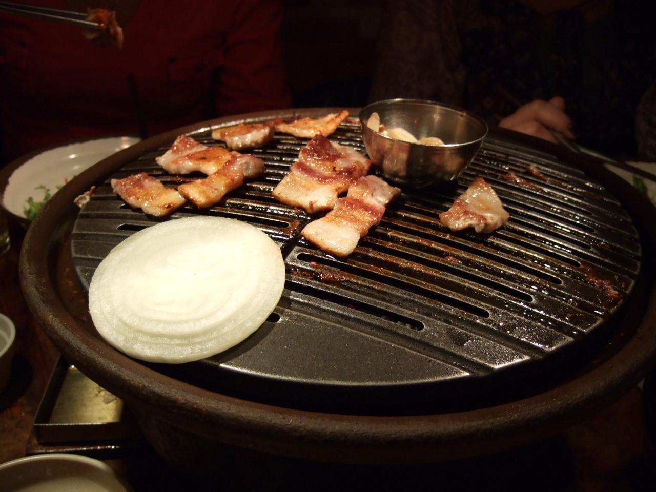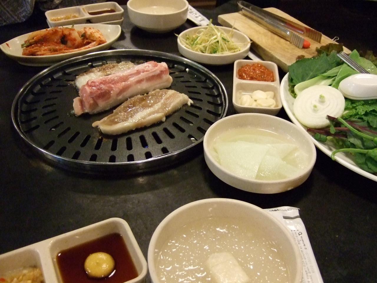 以前、ここで食べた「サムギョプサル」を食べたくて友人を連れて着ました。