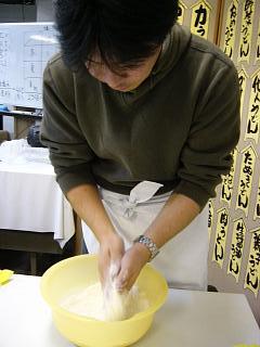 ?うどん粉から麺を作る(こねたり踏んだり)