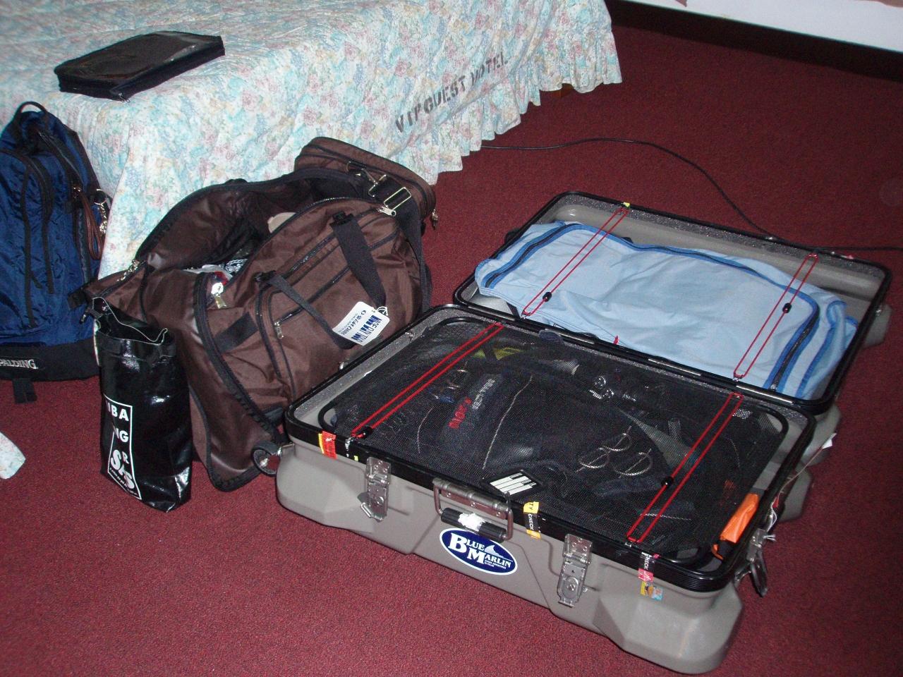 今回ダイビングに行くうえで気にかかっていたのが機内に預ける荷物の重量。ダイビング器材をしまうハードケース(プロテックス)とそれ以外の日用生活品などを入れたキャリーバッグ二点。重いカメラ周りのものを持込の方にしまっても30kgを超えてしまう。いろんな人から情報をもらって、重量制限については建前として30kgであっても実際には厳しくやってはいないと教えてもらってはいたけども、やはり係員に預ける時は少し緊張した。
