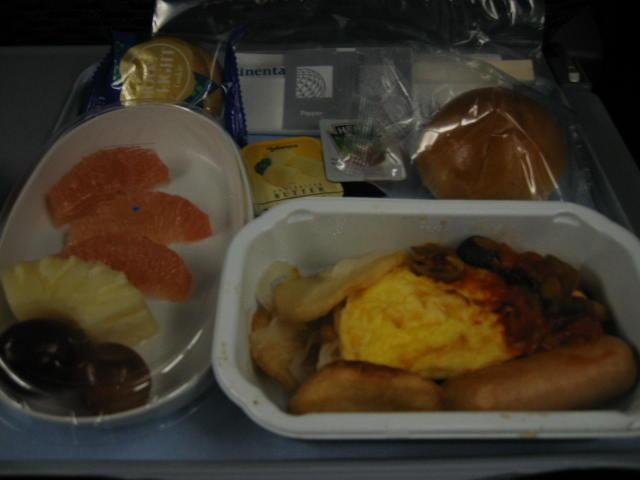 東京〜ニューアーク(ニューヨーク)の中のコンチネンタル航空の機内食(到着前の食事)です。13時間も乗ると3回も食事がでるんですね。