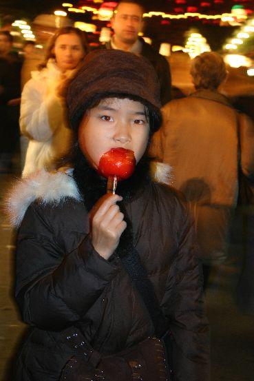 娘はりんごあめ、私はプンシュ(ホットワイン) -