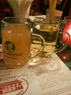 左がぶどうジュース。右がホイリゲ(新酒)。