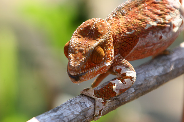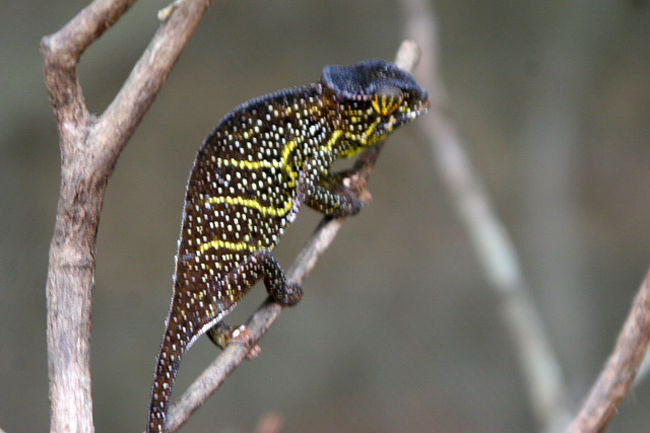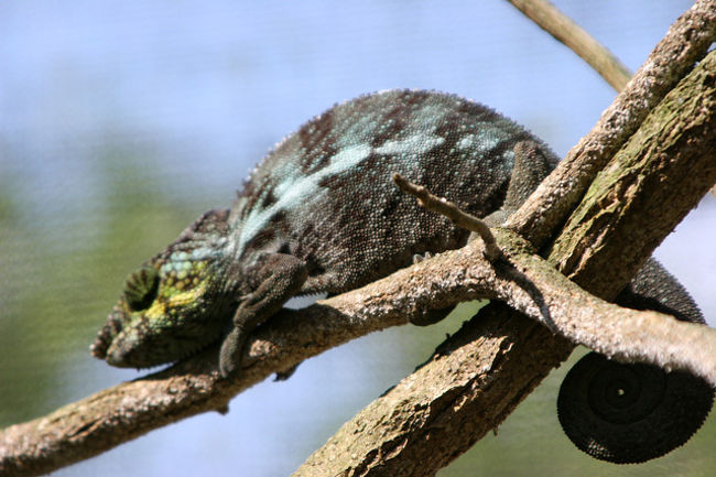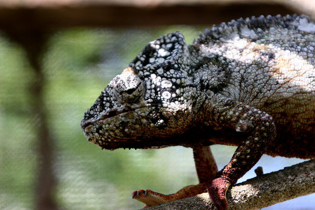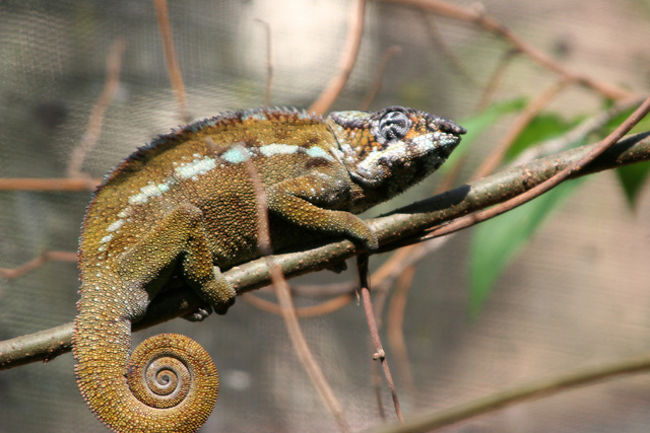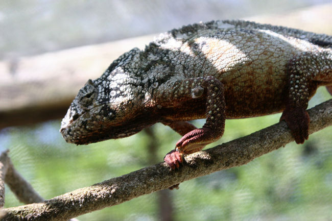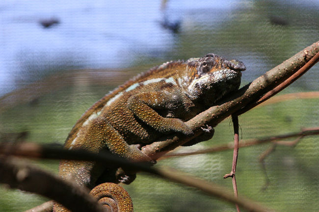 ペリネから約1Hrばかり走った所にこのカメレオンファームがある。ここではマダガスカルに生息するカメレオンや蛙、蝶、ヤモリ、コウモリ、蛇などが見られる。中でもカメレオンは世界に生息する種類の6割のものが見られ多種多様で大きいものから指先に乗るくらいの小さなものまでいる。こんなに沢山の種類が見られるのもマダガスカルならではのこと。オレンジ色のトマト蛙も珍しいが世界で最小のブルケシア蛙にも驚いた。鮮やかな緑色のパンサーカメレオンが気に入った。ファンタスティクスヘラオヤモリも珍しい。