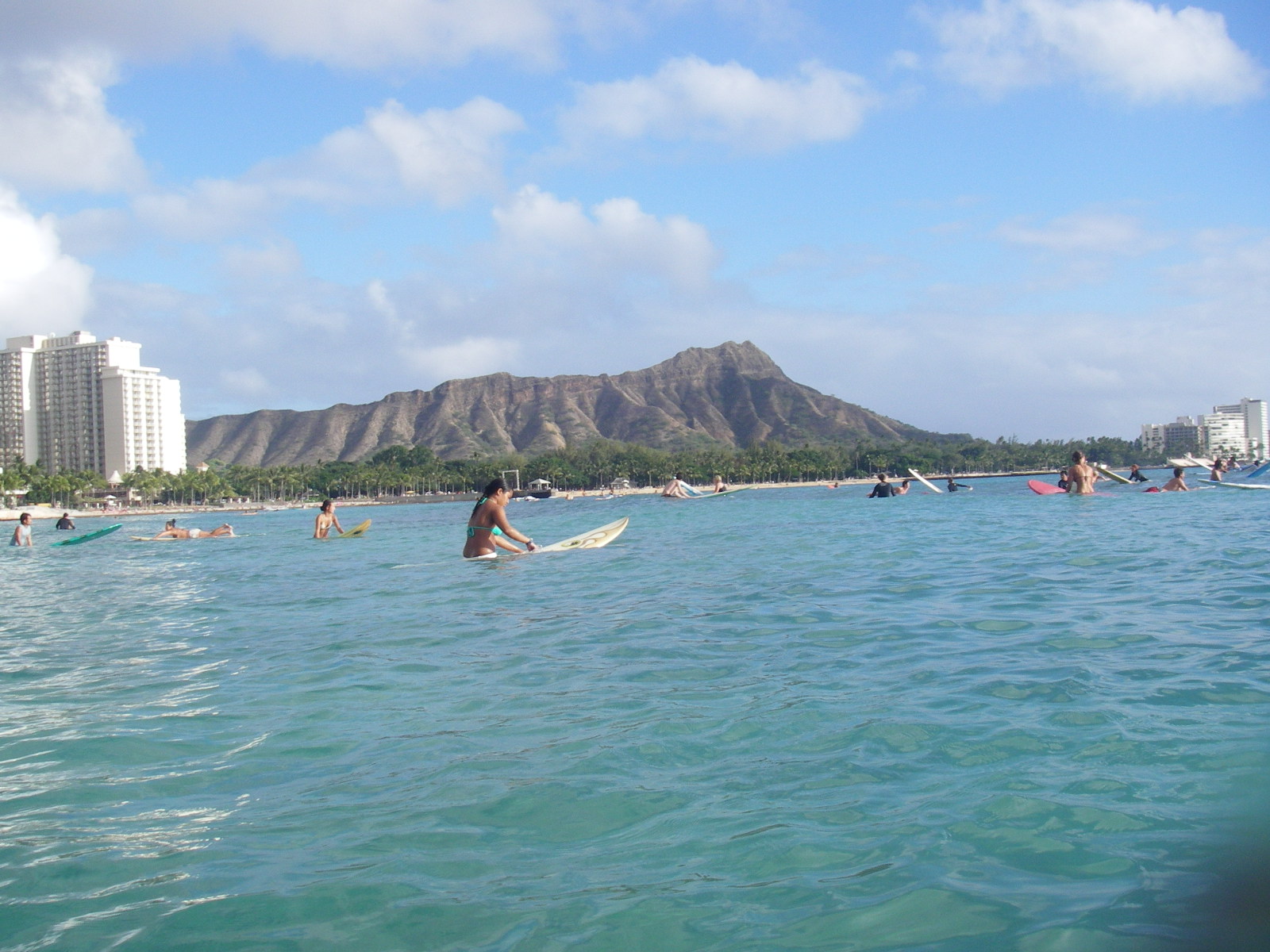 ワイキキビーチで波待ちをしながら望むダイヤモンドヘッド