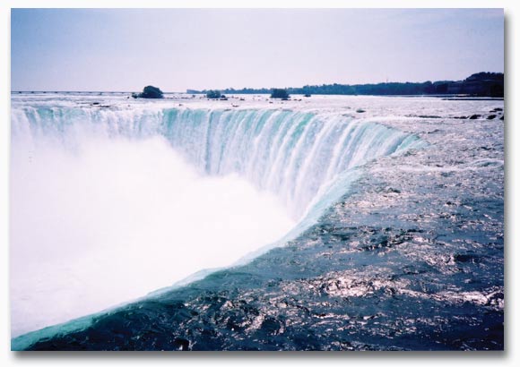 ナイアガラの滝の落ち際は、エメラグドグリーンの光を放つ↓