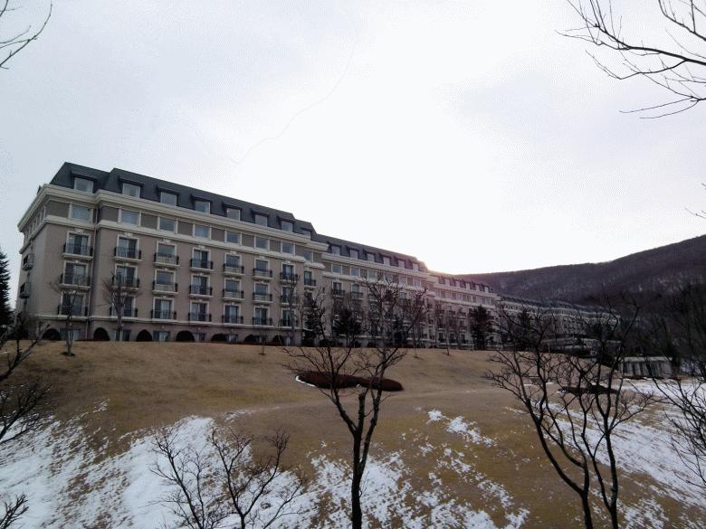 なんと横に広いエクシブ山中湖の全景が一枚に納められました