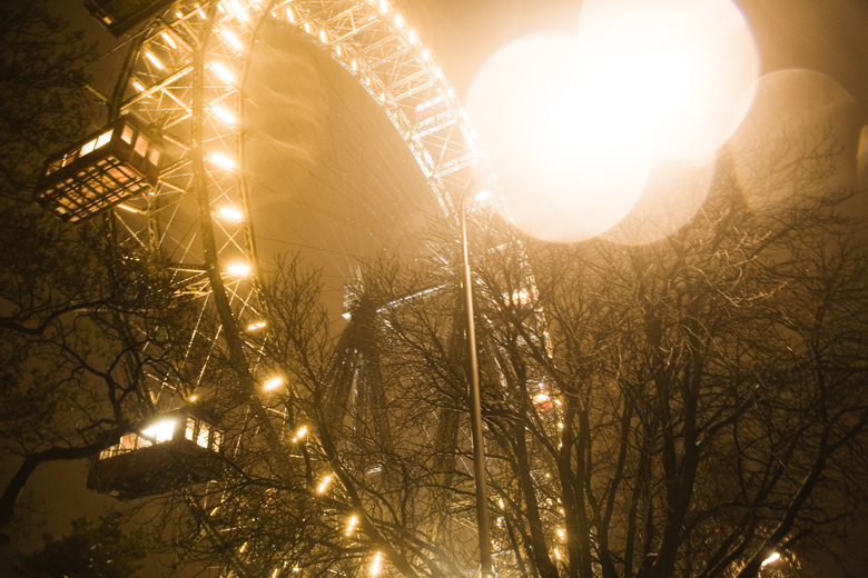 雨に煙るプラター。イーサンホークの映画で見た時から一度乗ってみたかったのですがすっかり真っ暗です。
