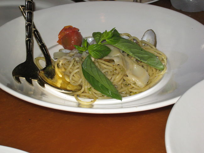 ホテル宿泊最後の夜ということで、娘が先日ハワイ島で見つけてきたくれたアロハシャツ(おみやげにもらいました)を着て、ホテルのイタリアンレストラン「ベラ・シンガラジャ」に行きました。