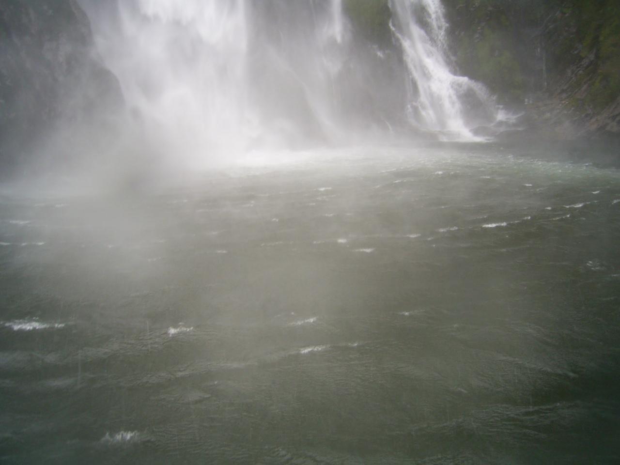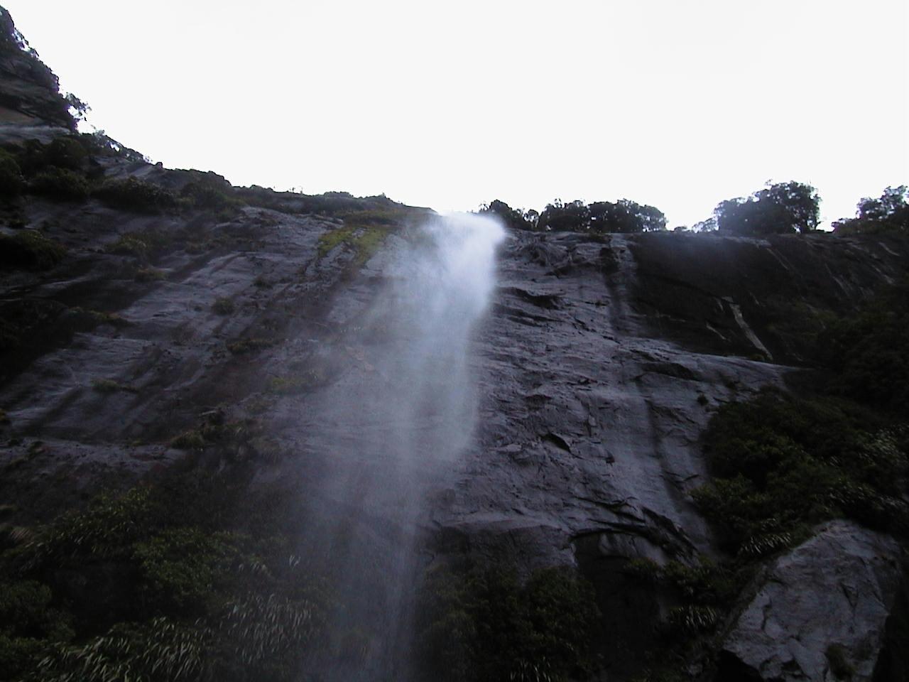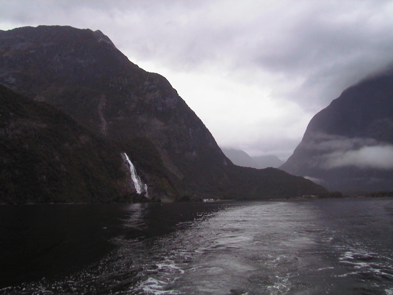 この景色をみると雨のミルフォードが良いのも分かります。晴天も良いですが、岩肌を白い流れが行く筋もできるすがたもすばらしいです。
