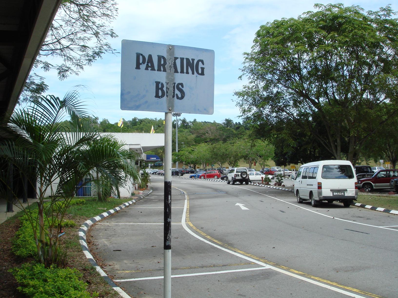 空港を出て右手にある、バス停に行ってみるが、時刻表もないしバスが来る様子もない。 -