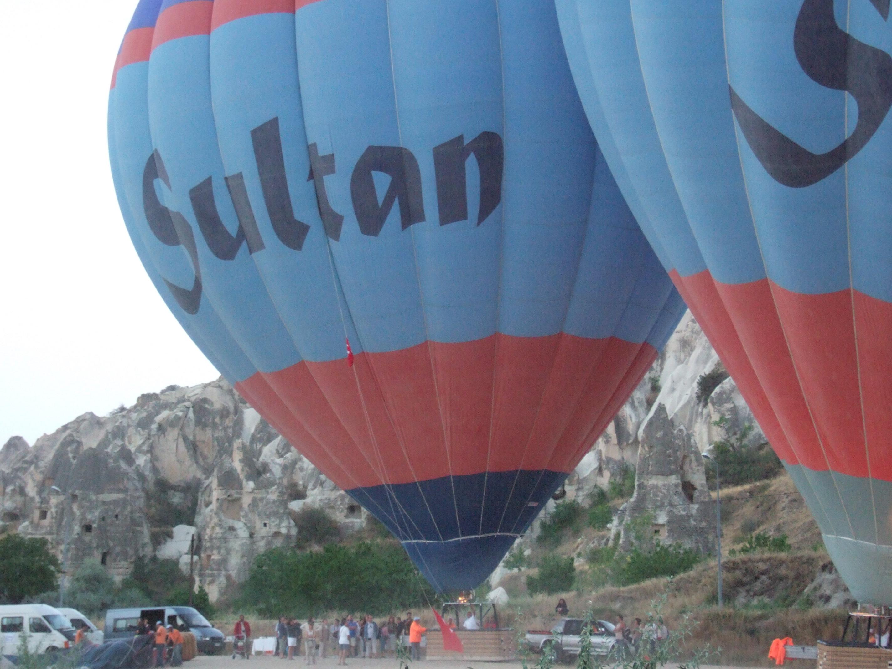 気球を膨らませて、準備中。