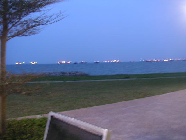 海上に見えるのは船。水平線見渡す限り船、船、船です。 -