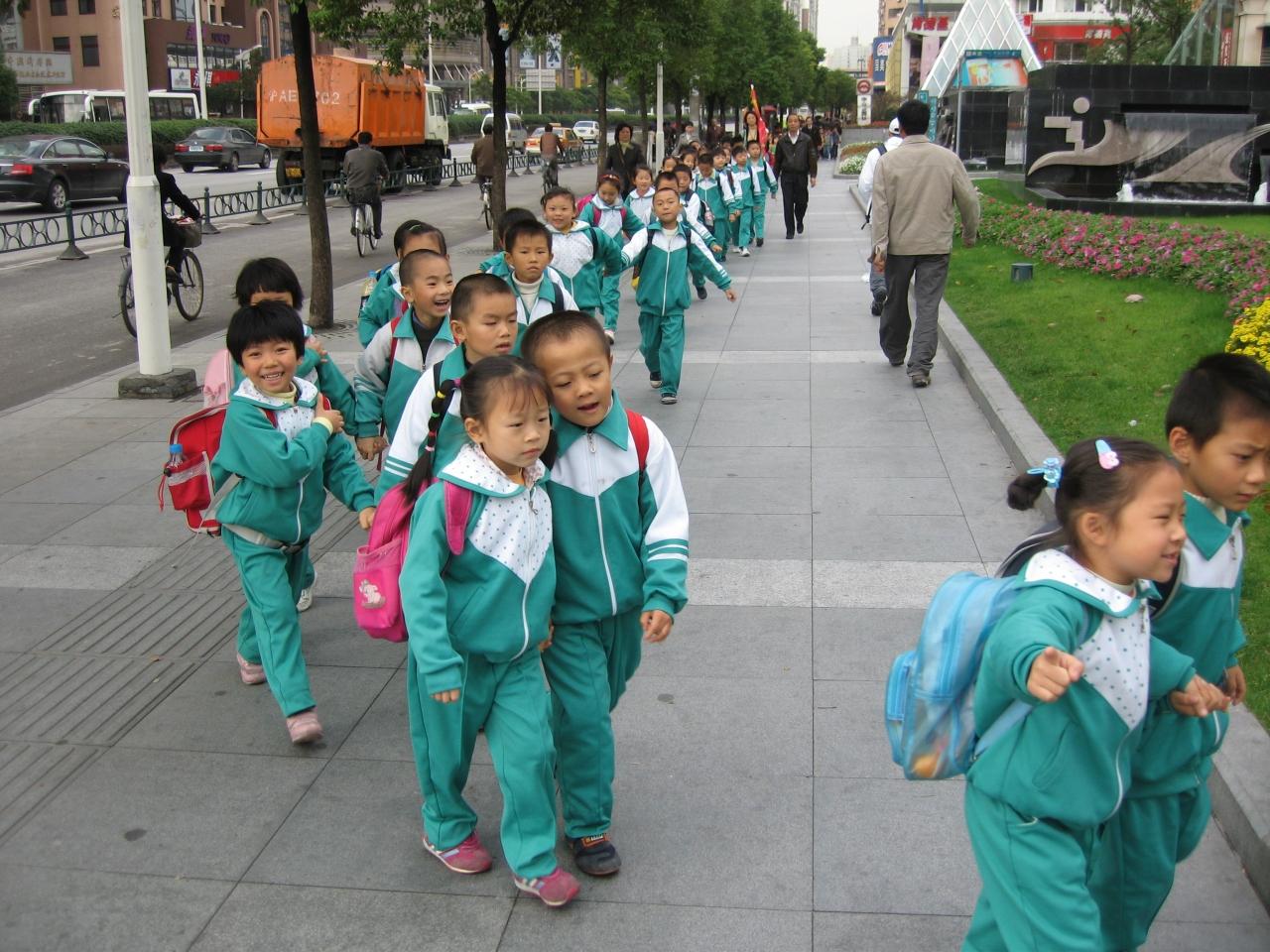 今日は早速、水郷古鎮を目指して上海体育館のバスターミナルへ。中山公園駅へ向かう途中、ガキンチョの大群と遭遇。遠足か、社会科見学か?仲良くお手手つないで、公園へ。無邪気なガキンチョの笑顔がかわいい。