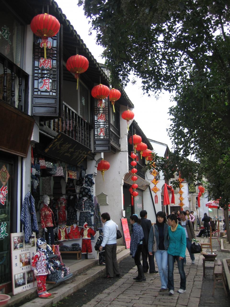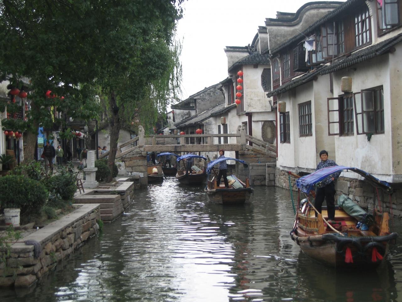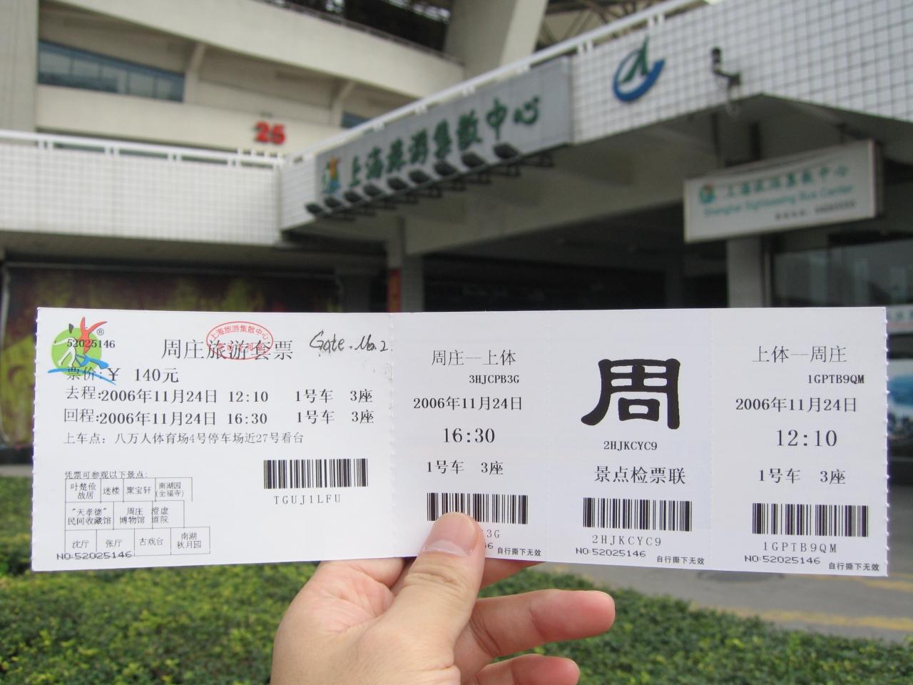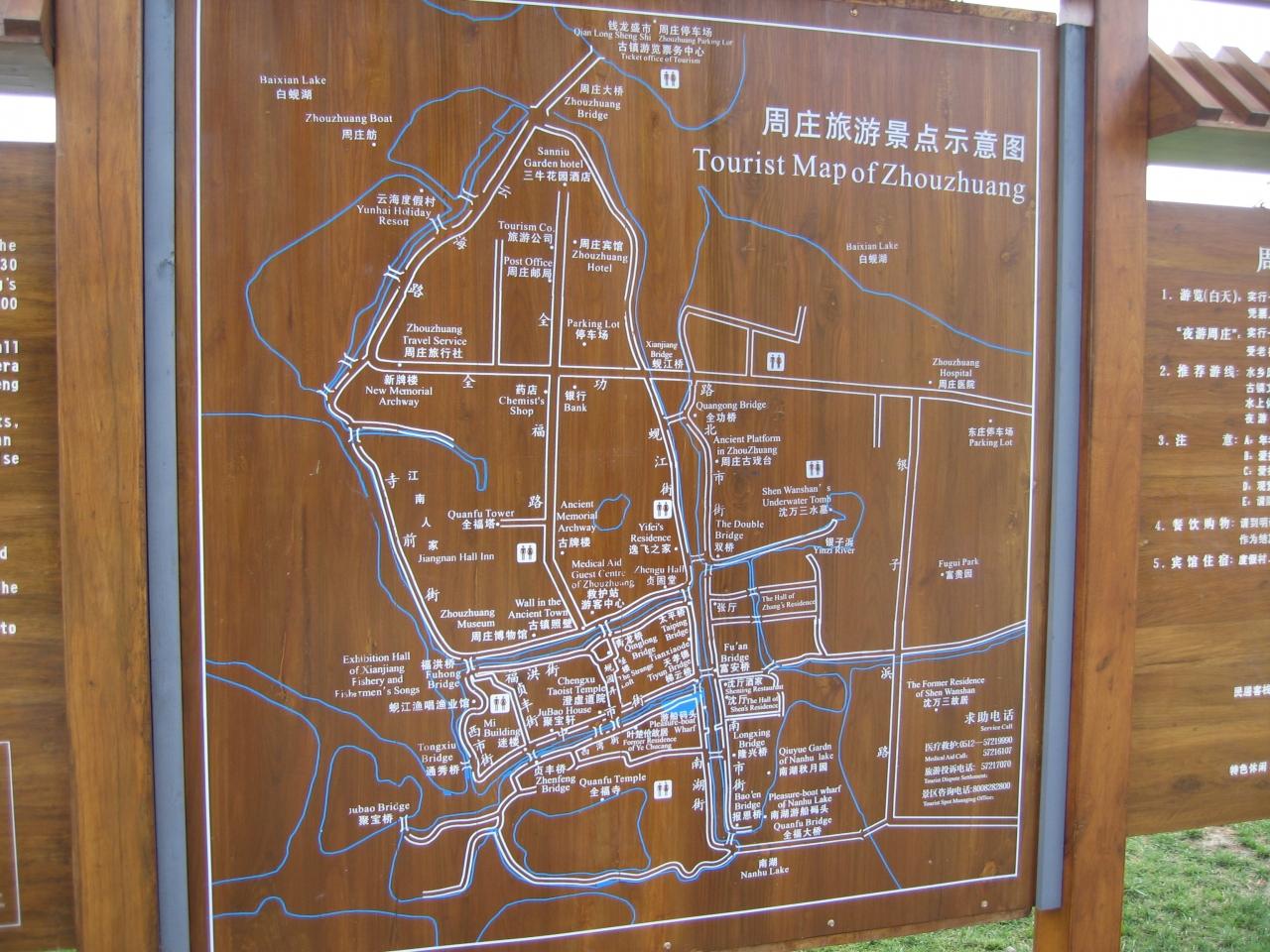 周荘到着。うーん結構広いのか。楽しみだこりゃ。天気が悪いおかげで、かえって雰囲気があってよろしい。 バスを降りるや否や地図を売りつけてくるおばちゃんたち。うーんいいねえ。これでこそ中国NO.1の水郷古鎮というもんだ。観光地ならではの、このうざったさがなんともいい。