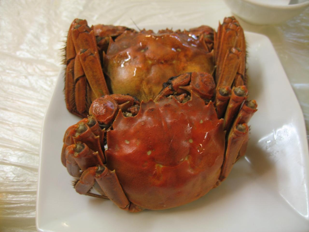 さて夕飯をどこで食べるかって、B級グルメのメッカ呉江路をてくてく歩いていると、おやこんなところにあるじゃないか上海蟹。