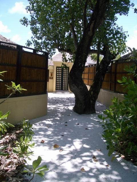 ビーチの奥側にヴィラの門があります。