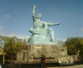これは高さ9.7m、重さ約30tの青銅製で「右手は原爆を示し、左手は平和を、顔は戦争犠牲者冥福を祈る」と台座に刻まれていました。