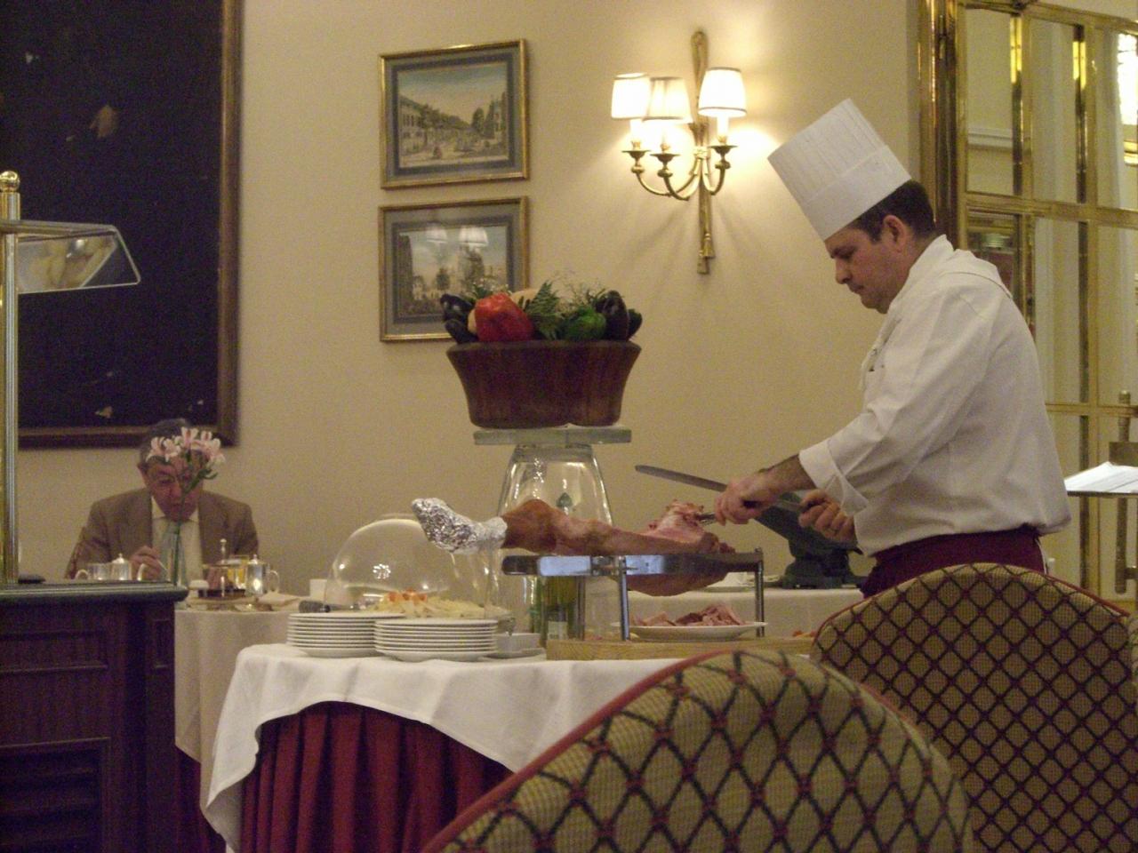毎朝ハムがあり、シェフが1枚づつ切り分けて