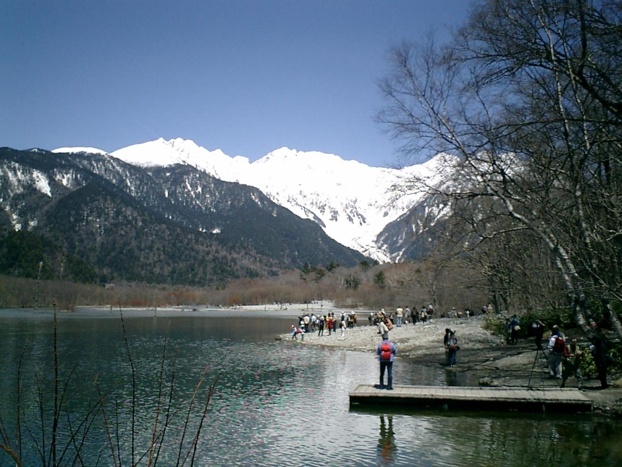 大正池から北アルプスを望む。