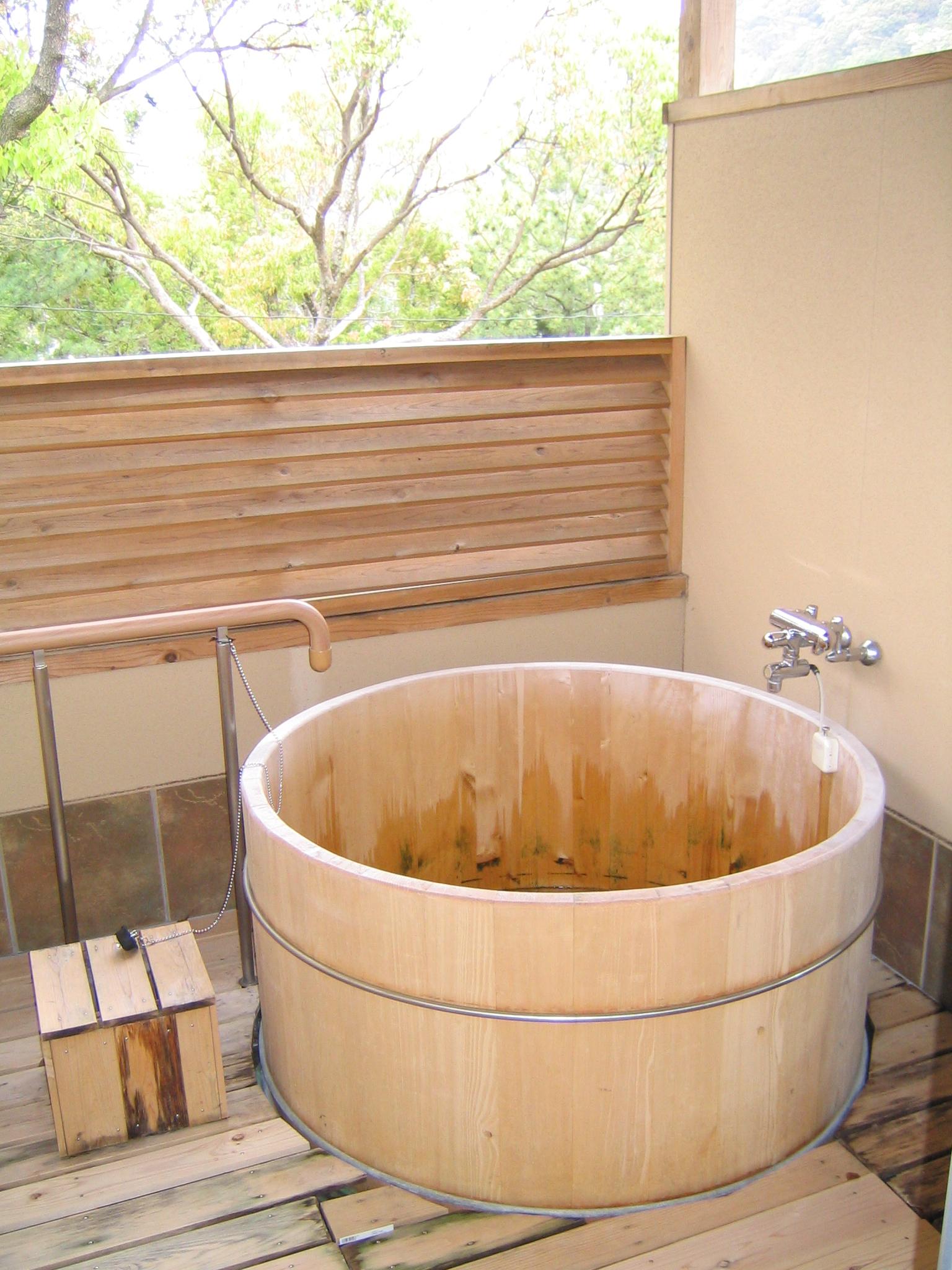 檜の浴槽の客室露天風呂。